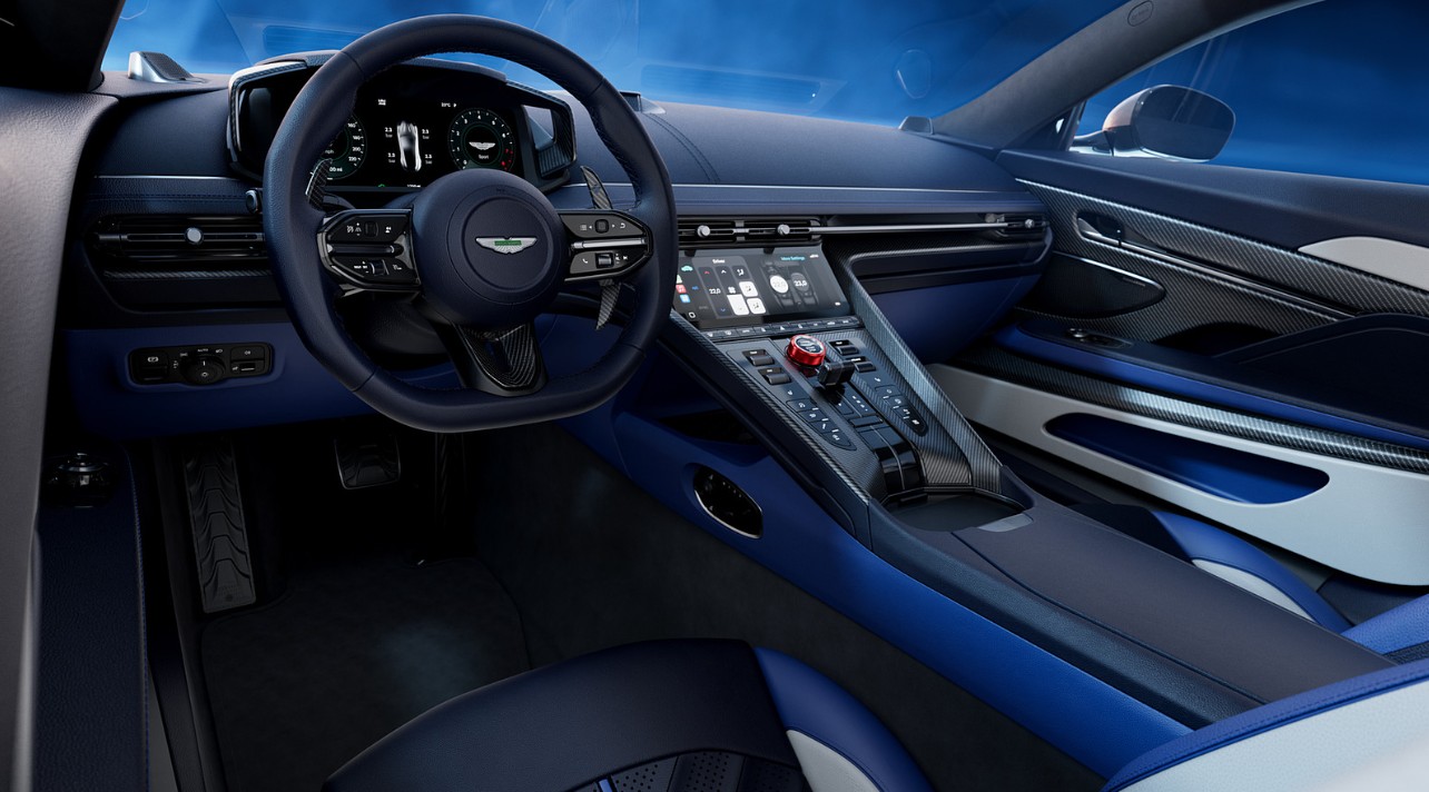 The aerodynamic improvements on this car define its profile. By using side sculpting and underbody venturis to reduce turbulence, Aston Martin has improved high-speed stability. The lightweight forged alloy wheels reduce unsprung mass and increase grip performance. Both 21-inch and optional carbon sets are available. Among the finishes that give the car’s flowing surfaces amazing depth are Hyper Sapphire Blue, Glacier Titanium Silver, and Racing Emerald Green. Every component, including the side mirrors and door handles, has been overhauled for both efficiency and style. The exterior of the DB12 S is not only aesthetically beautiful but also useful, as it is intended for dynamic excellence and long-lasting appeal.
