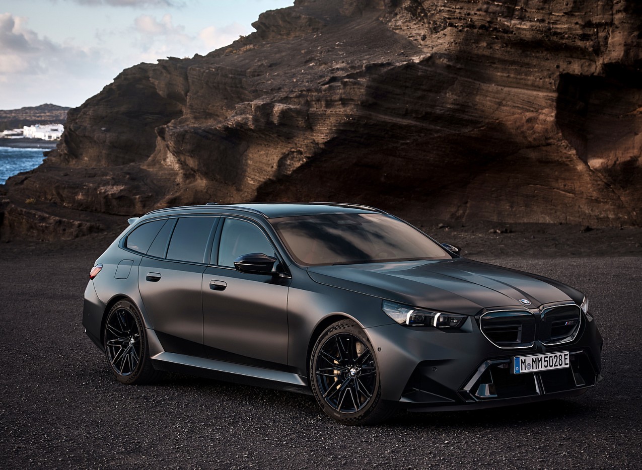 The 2026 M5 Touring stands out thanks to its muscular front fascia. The front is dominated by a bigger kidney grille with lighted surrounds, which is flanked by functional air vents that cool the hybrid system and adjustable laser headlights. Massive 20- and 21-inch forged alloy wheels are housed in flared wheel arches on a lower body. Its dual personality—a family-friendly estate with race-bred performance—is highlighted by a subtly placed roof spoiler, quad exhausts, and an M-specific diffuser.