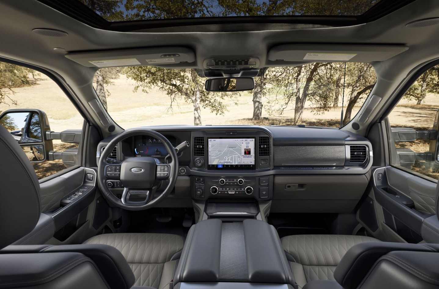Ford has gone above and beyond to create a cabin that is both practical and enjoyable. In higher-end versions like the Platinum and Limited, the interior design incorporates high-end materials like real wood trim, metal accents, and soft-touch leather. Even the entry-level models are more sophisticated, with strong yet fashionable surfaces made to resist rough treatment. With its large 12-inch central touchscreen as its focal point, Ford’s infotainment system provides wireless smartphone integration, sophisticated navigation with trailer routing assistance, and easy-to-use controls. Long-haul trips will remain comfortable for both crews and families because to the enhanced rear-seat comfort, which includes increased legroom and heated and ventilated seats.