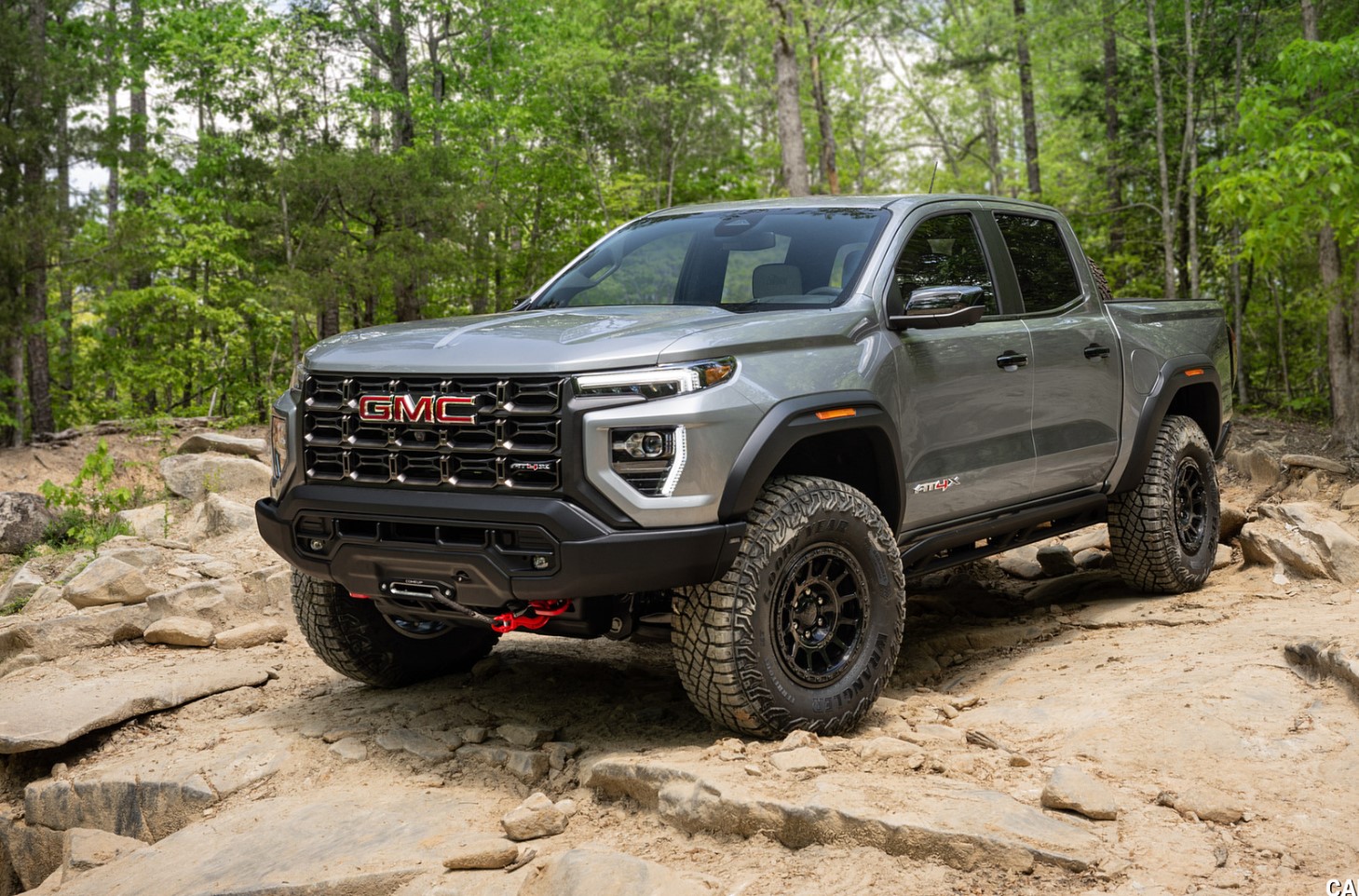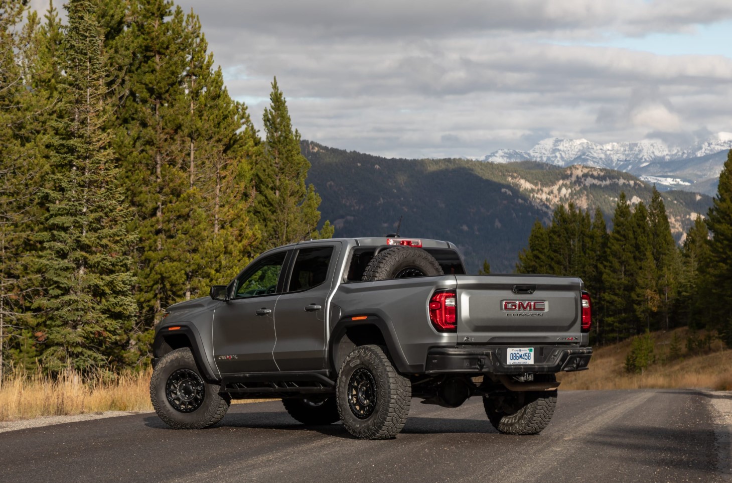 As an added layer of protection for your body when riding on uneven terrain, rock sliders are installed as standard equipment along the sidewalls. There are tow hooks and space for aftermarket items on the rear steel bumper, which is identical to the front bumper. All terrain grip is guaranteed on the AT4X AEV Edition’s unique 17-inch beadlock-capable wheels shod with 35-inch Goodyear Wrangler Territory MT tires. Rugged matte treatments are available for the outside paint job, and the distinctive AEV badging distinguishes it from the regular Canyon trims.