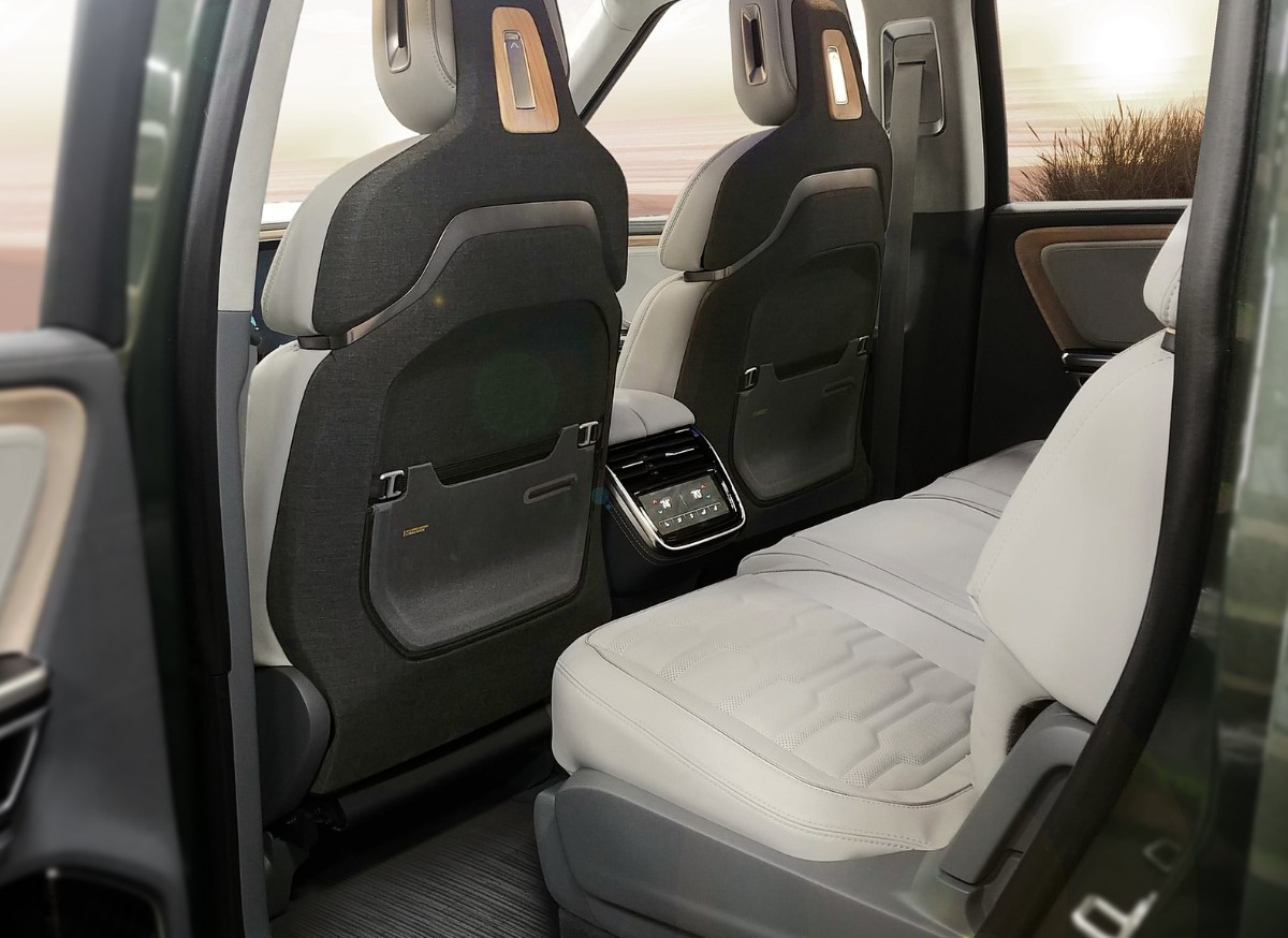 The second row is not a last-minute addition. More legroom, a 9.8-inch back control screen, built-in seat massagers, and motorized reclining are all available to rear passengers. The center console has two built-in wireless charging pads, and each door panel has pull-out pockets for emergency supplies, tools, or flashlights. In order to provide an immersive cabin experience that is customized for your journey, the new “Adventure Ambient” lighting system changes color dependent on weather and drive mode.