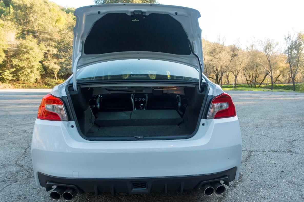 The WRX sedan has good load capacity with its 12-cubic-foot trunk and fold-down back seats. Standard on the Series White are comfortable and supportive Recaro front seats. My butts remain where they should be, even when brutally encircled.