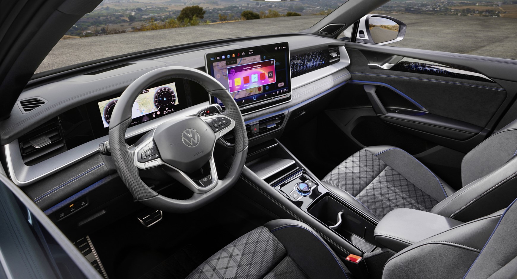 The increased cabin volume is a direct result of the larger wheelbase. The rear seatbacks can be adjusted, and there is more legroom for the passengers. Perfect for families or adventurers, the cargo capacity now surpasses 700 liters with the third seat folded down and over 1,900 liters when both the second and third rows are flattened. The 2026 Tayron steps into premium territory inside, complete with tri-zone climate control, a panoramic sunroof, and upgraded sound insulation—all without the premium badge price.