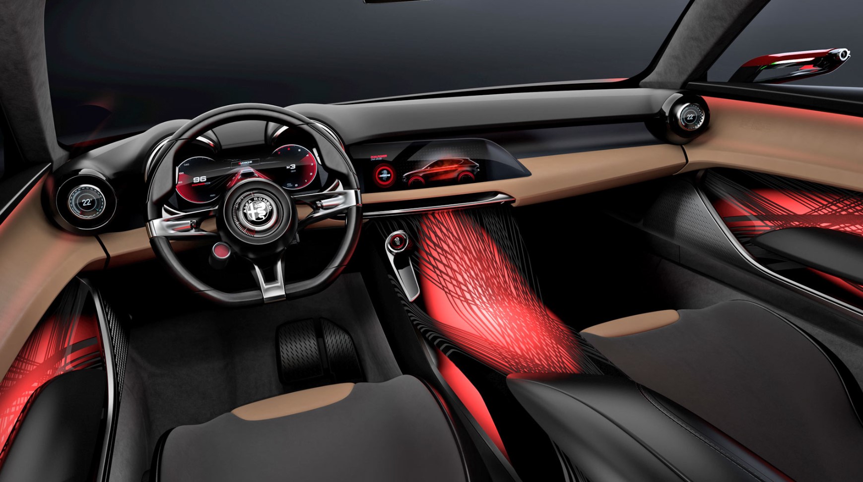 With elements like the driver-centric dashboard arrangement and circular air vents, the interior design is influenced by the Alfa Romeo Giulia and Stelvio SUVs. The interior also has a 12.3-inch digital instrument cluster, and the three-spoke steering wheel gives the conventionally designed car a modern touch. Additionally, you get a choice between two popular paddle shifters.