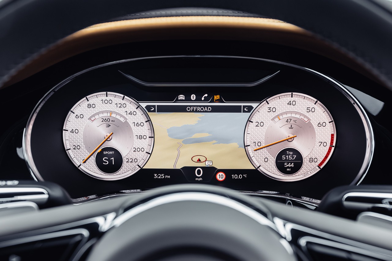 The Mulliner model’s makeover by Bentley prioritizes exclusivity. New two-tone paint finishes inspired by Ombre and forged metals proprietary to Mulliner with diamond-cut motifs are just two examples of how the 2027 edition reflects a personalized approach. The grille now features a striking diamond-mesh pattern, and the bumpers have been reshaped to include small aero fins for enhanced airflow control. Crystalline detailing, an innovation in LED matrix lighting, makes for a distinctive visual character at all hours of the day and night.