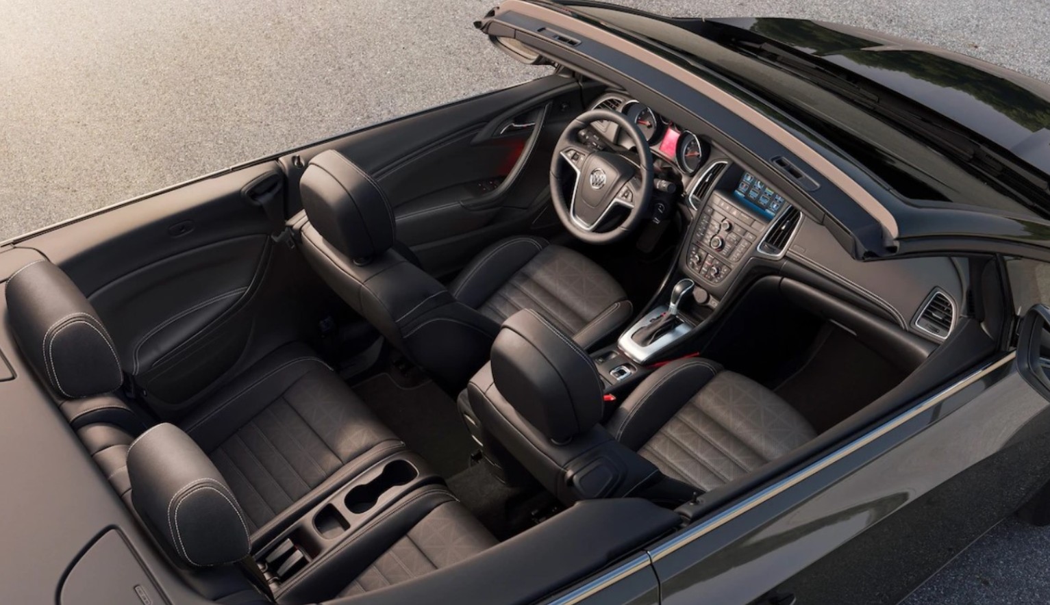 New multi-contour front buckets that provide ventilation and warmth as well as dynamically adjustable active side bolstering have been added to the seating. Although the rear seat capacity has been enhanced with deeper seat cushions and more legroom, it is still best suited for shorter journeys or fewer people. With the addition of an active noise cancellation system and laminated side glass, Buick’s QuietTuning technology is fully functional and produces a genuinely quiet interior even when the top is up.