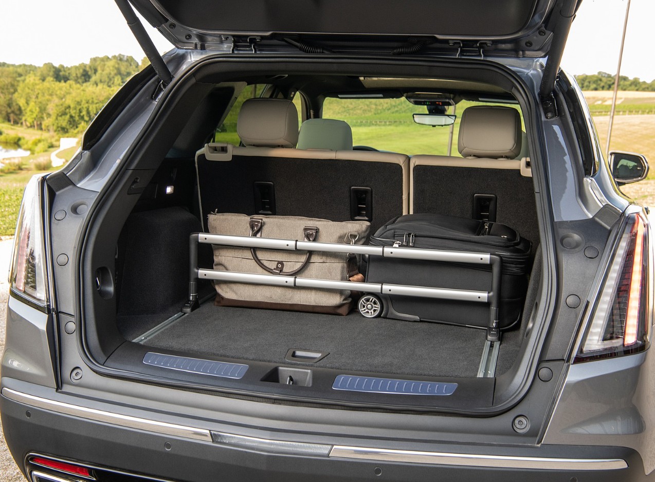 The identity of the new XT5 is defined by details. In order to create a sleek and contemporary appearance, chrome has been reduced and replaced with glossy aluminum and gloss-black accents. A brighter, more open cabin feel is made possible by the larger and more seamless panoramic UltraView sunroof. The SUV can be further customized with optional appearance packages like the Sport and Platinum trims, which include carbon-fiber accents, performance-inspired bumpers, and distinctive grille patterns. With power-assisted pop-out capabilities, even the door handles are now flush-mounted, improving aerodynamics and adding a high-end look reminiscent of Cadillac’s premier EV series.