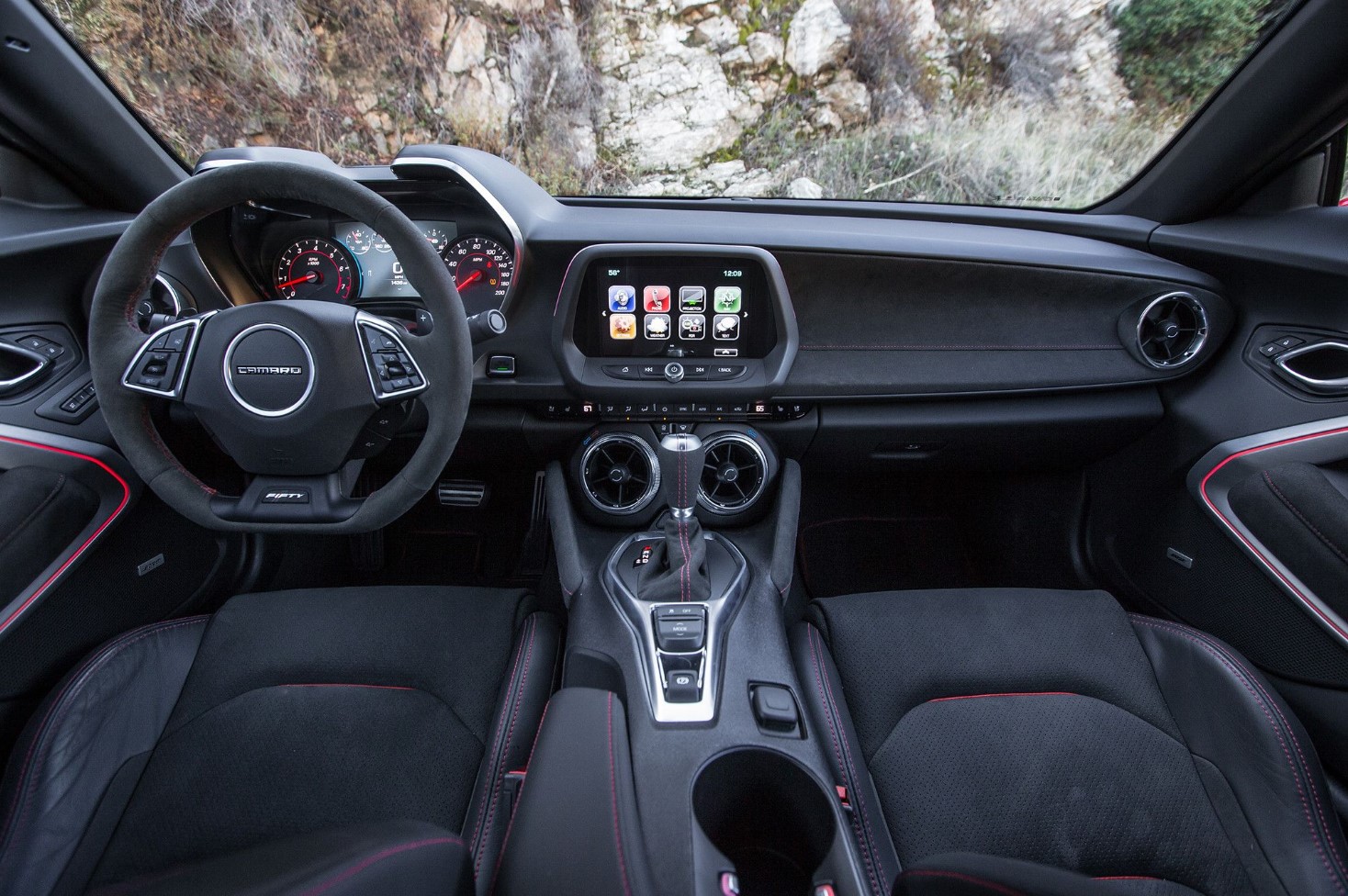 In addition to the Recaro seats, the ZL1 has a suede-wrapped steering wheel, wireless device charging, dual-zone automatic climate control, aluminum sport pedals, and a head-up display.