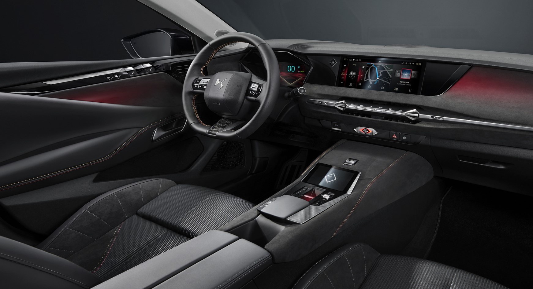 The new DS 4’s dimensions are still small, but it has improved wheel arches that can accommodate up to 20-inch diamond-cut alloys, a broader stance, and a lower ride height. The automobile has a dynamic silhouette thanks to its sculpted body panels with concave surface, and for extra flair, the roofline tapers into a discreet ducktail spoiler. Tri-tone paint choices (including the new “Iridescent Obsidian”), flush door handles, and blacked-out pillars all contribute to a distinctively French refinement that is both sophisticated and modern.