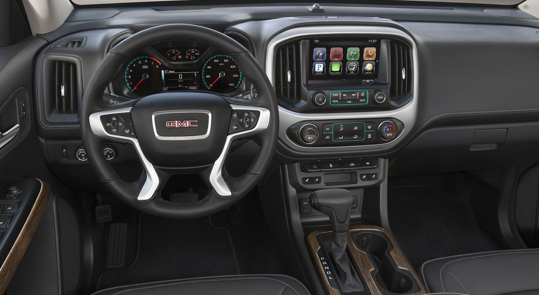 When it comes to mid-size trucks, the Denali model stands out with its luxurious cabin. The upholstery is made of premium perforated leather and features contrast piping and Denali embossing as standard features. The cabin is more like that of a high-end SUV, with soft-touch surfaces, brushed aluminum accents, and real wood inlays around the driver and passengers. Both the 12.3-inch digital driver information display and the 13.4-inch infotainment screen have been upgraded for the 2027 model year, and they both provide clear images and easy navigation. The interior is as well-connected as it is comfy with to features like a 12-speaker Bose premium music system, built-in navigation, Android Auto, and wireless Apple CarPlay.