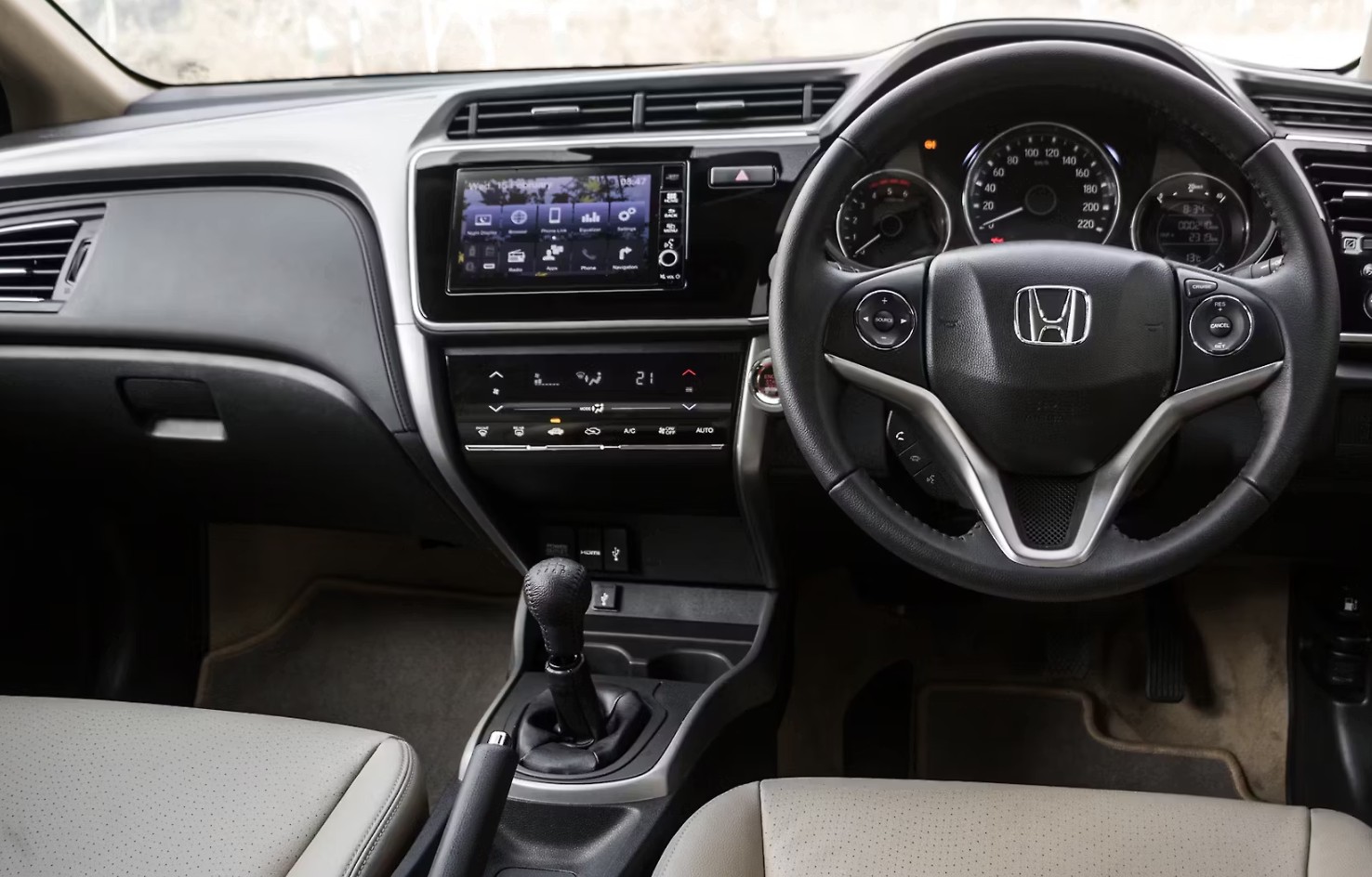Inside, the cabin receives an extensive upgrade in both layout and materials. Soft-touch trims now cover much of the dashboard and door panels, giving the City a more upscale feel. A redesigned infotainment system sits atop the center stack, featuring a larger touchscreen with improved responsiveness and wireless smartphone connectivity. Honda incorporates a fully digital instrument cluster on higher trims, offering customizable viewing modes for navigation, efficiency, and performance. Rear passengers benefit from increased legroom thanks to the lengthened wheelbase, while improved seat cushioning ensures better long-distance comfort.