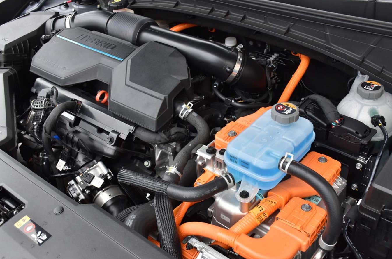 A 1.6-liter turbocharged gasoline engine adds 178 horsepower and 195 pound-feet of torque to the hybrid powertrain, bringing the total output to 231 horsepower and 258 pound-feet of torque. A trustworthy six-speed automatic gearbox ensures seamless shifting for the Tucson Hybrid.