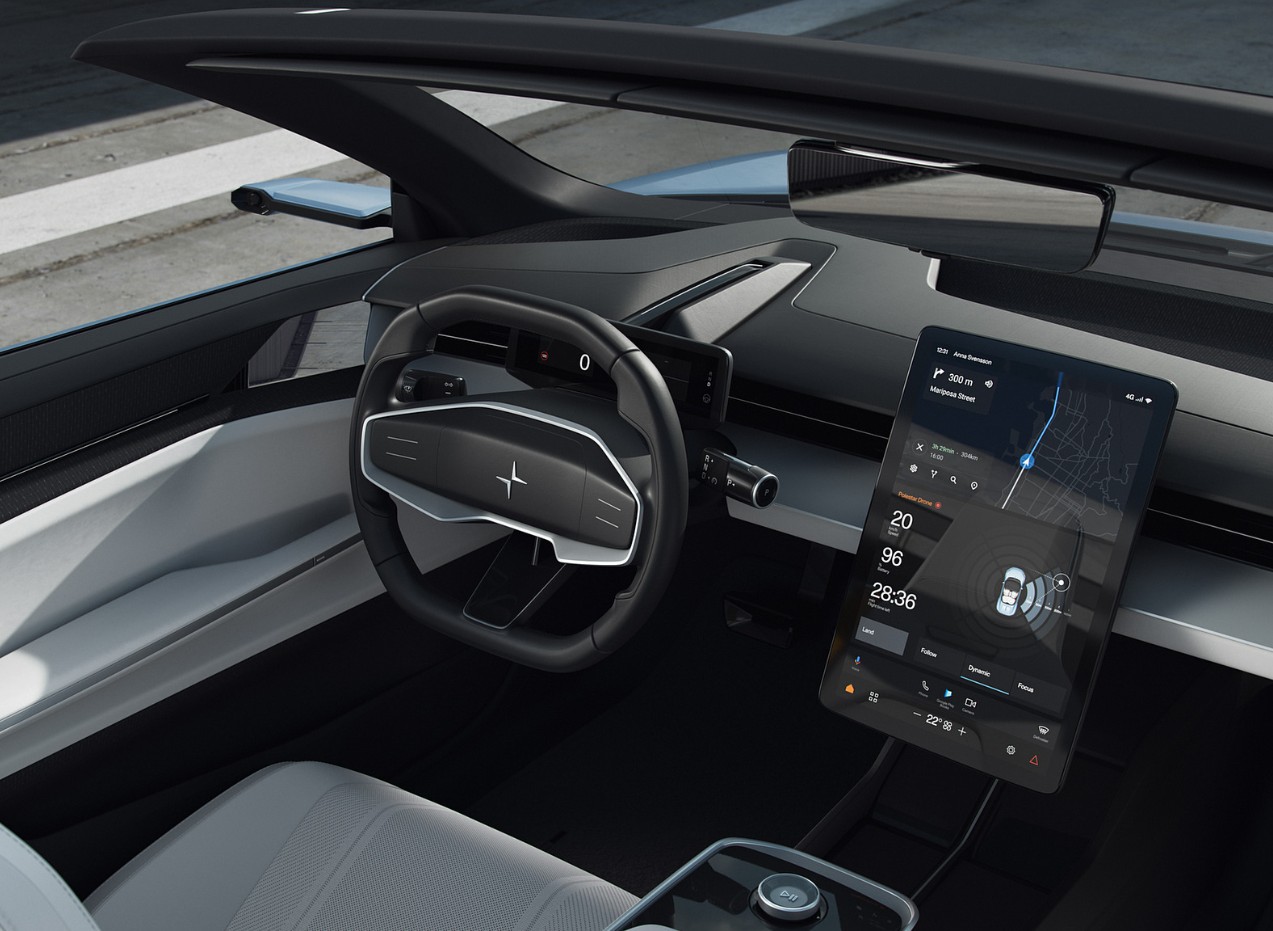 On the inside, you’ll find opulent touches that echo Polestar’s signature Scandinavian minimalism. The eco-luxury atmosphere is set by sustainable upholstery crafted from plant-based leathers, recycled PET, and ethically sourced metals. The dashboard is dominated by a broad, free-floating 15-inch center display, with a 12-inch digital cluster that is driver-focused serving as a complement. In order to keep you comfortable and supported even on lengthy rides, the seats have been ergonomically designed. When the roof is open, the inside is extremely bright and airy thanks to the combination of light-colored fabrics and dark trim.