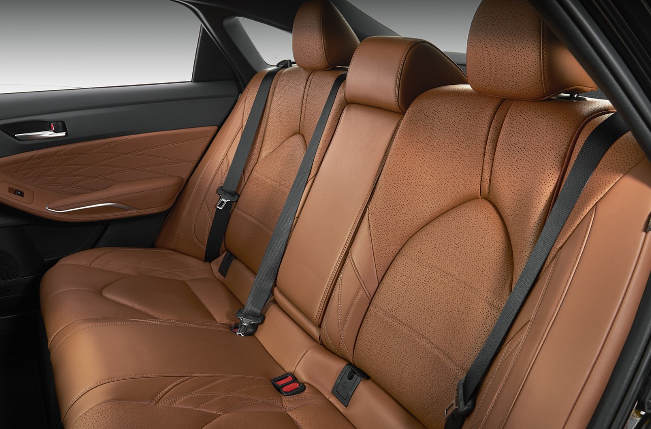 With aerodynamic fins, a sculpted trunk lid, and dual exhaust outlets that blend in perfectly with the bumper, Toyota has added a more athletic look to the back. Top trims are equipped with optional 20-inch machined aluminum wheels with a turbine-inspired design, while new 19-inch alloy wheels are standard. Customers can select from a new range of high-end finishes, including Deep Garnet Metallic, Meteor Gray, and Wind Chill Pearl. Sportiness and executive appeal are balanced by subtle chrome accents on the grille and window surrounds. Every aspect of the Avalon’s design contributes to its aerodynamic efficiency, high-speed stability, and aesthetic appeal.