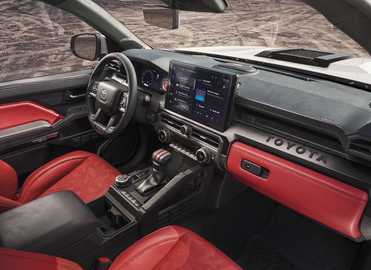 On higher equipment levels, the Tacoma now has a 14-inch central infotainment display with wireless Apple CarPlay and Android Auto, along with a fully digital instrument cluster. Toyota has included wireless device charging, several USB-C charging connections, and an updated JBL audio system. The Tacoma provides ingenious storage options for individuals who utilize their truck for work, including as a 120V power converter, modular bed attachments, and lockable under-seat lockers. The cabin of the Tacoma is now as connected and adaptable as it is cozy thanks to these upgrades.